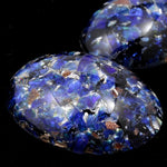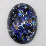 Handmade 18mm x 25mm dark blue glass with silver and gold foil.
