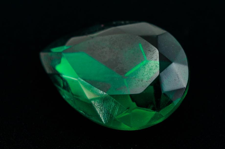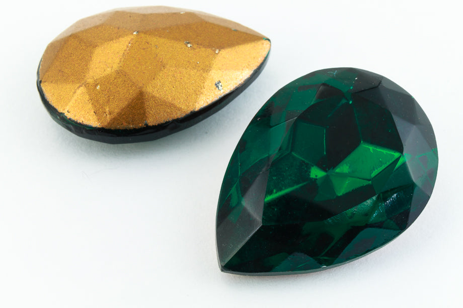18mm x 25mm emerald faceted teardrop point back with gold foiling.