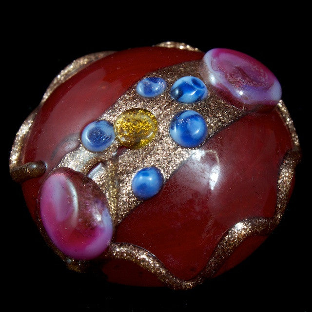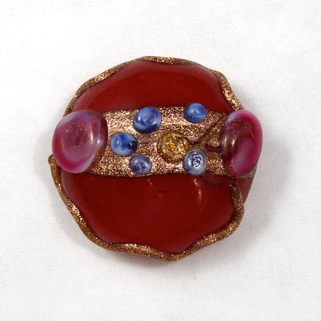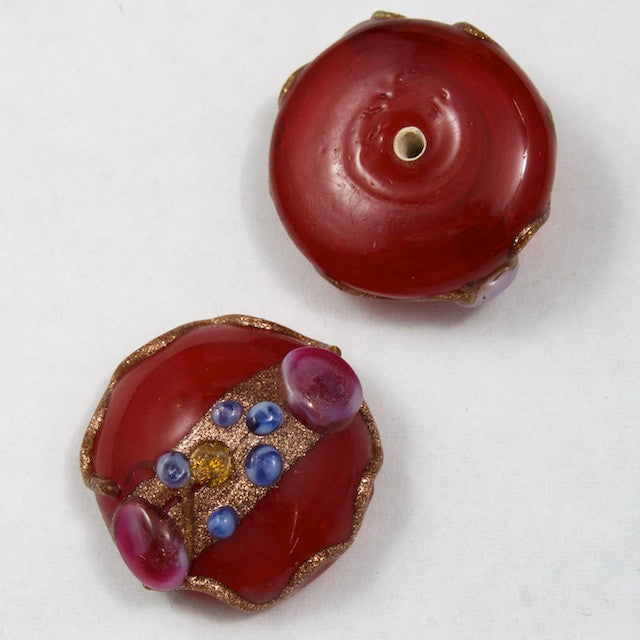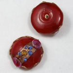 20mm red flat back dome with gold frosting and pink/blue flowers.