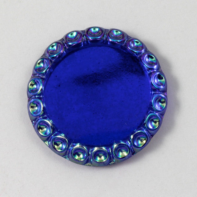 25mm intense blue flat top wreathed with iridescent circles. Flat back.