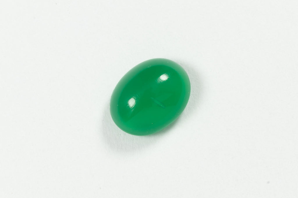 Vintage glass cabochon.6.19mm x 7.92mm green domed oval flat back.Made in Germany or the Czech Republic in the 1960's or earlier.Sold individually.