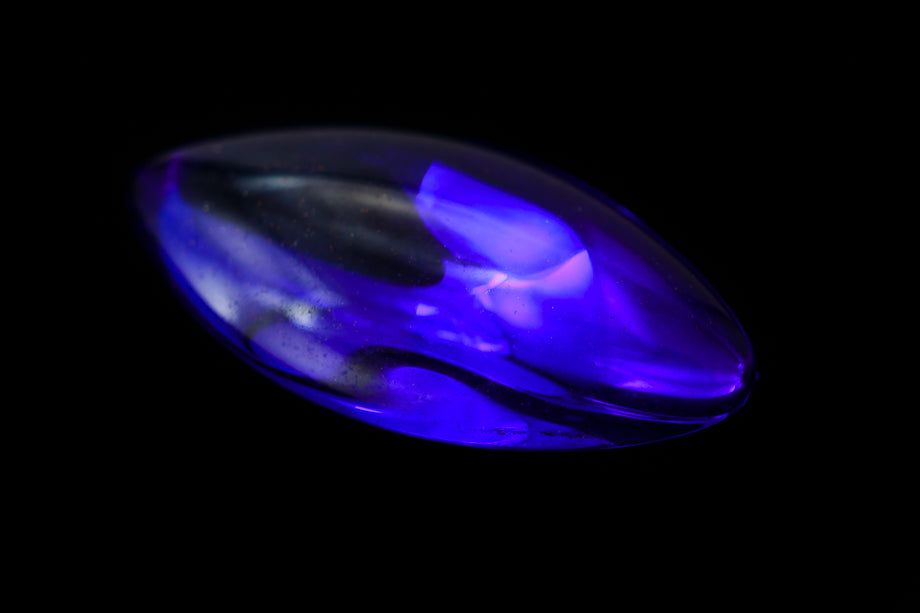 7mm x 15mm cobalt smooth navette point back cabochon with gold foiling.