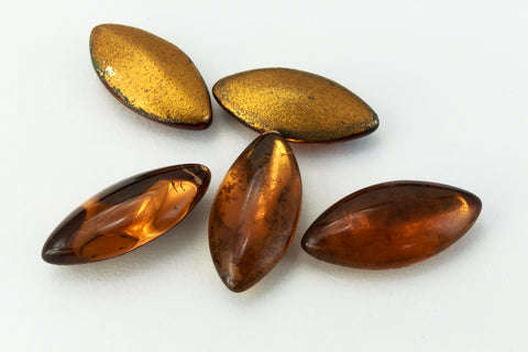 7mm x 15mm dark topaz smooth navette point back cabochon with gold foiling.