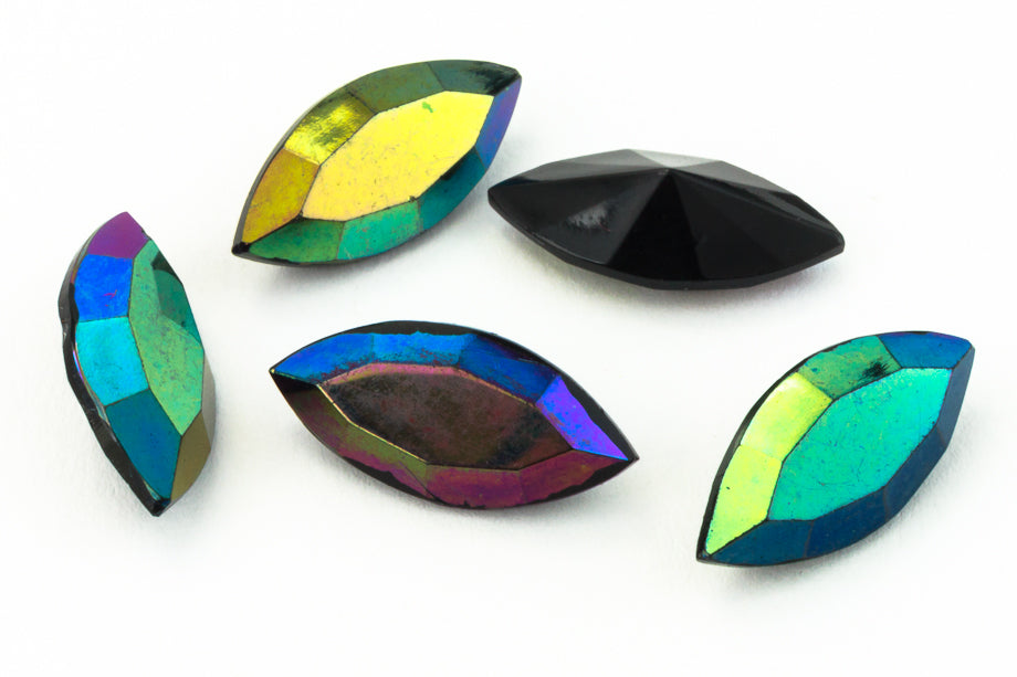 7mm x 15mm jet AB faceted navette point back with no foiling.