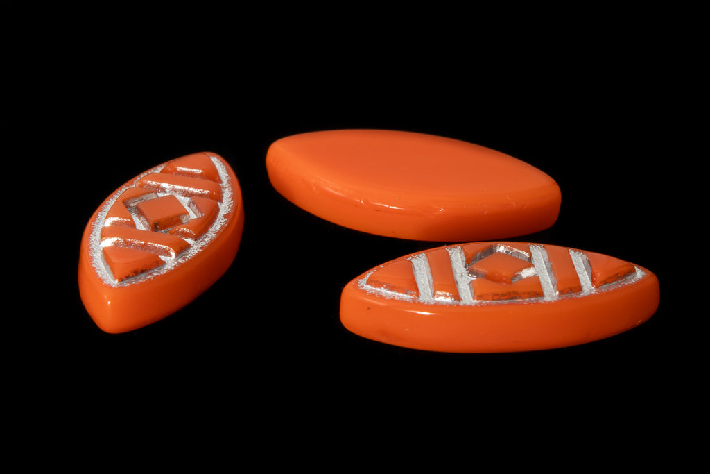 Vintage 7mm x 15mm Orange/Silver Navette Cabochon #XS97-A-2