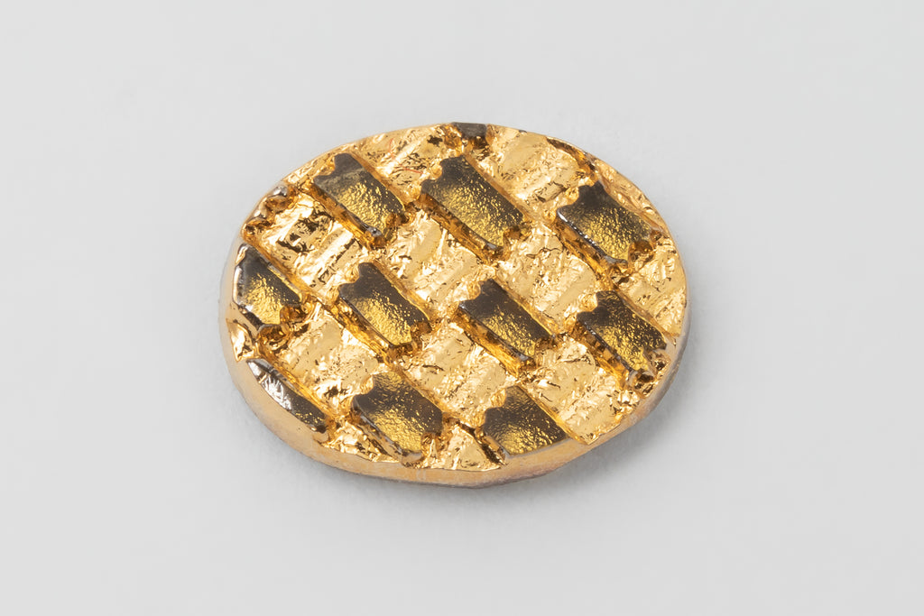 8mm x 10mm gold and gold skewed checkerboard oval.