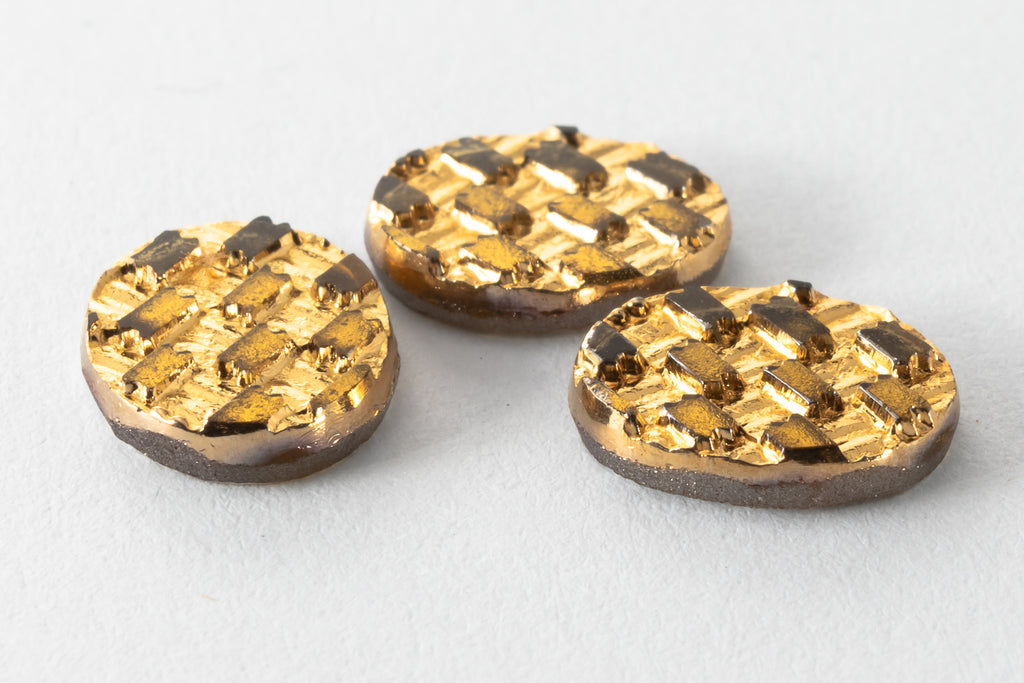 Vintage 8mm x 10mm Gold and Gold Checkered Oval Cabochon #XS4-E
