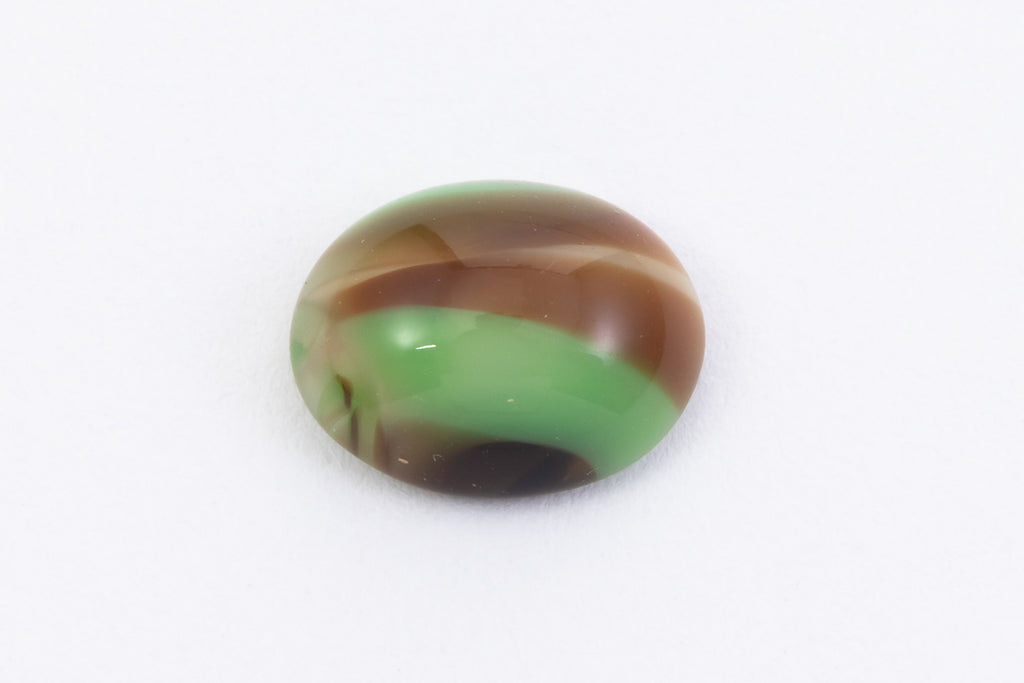 7.9mm x 9.5mm domed oval flat back with lengthwise stripes of green, brown and white.