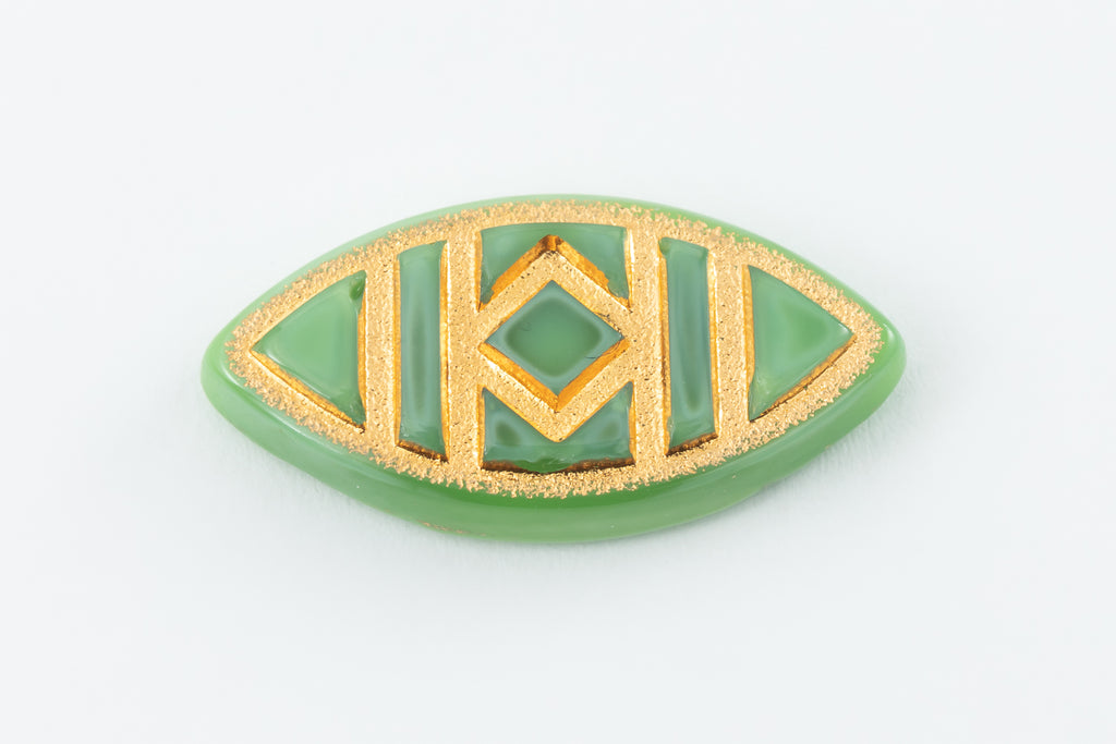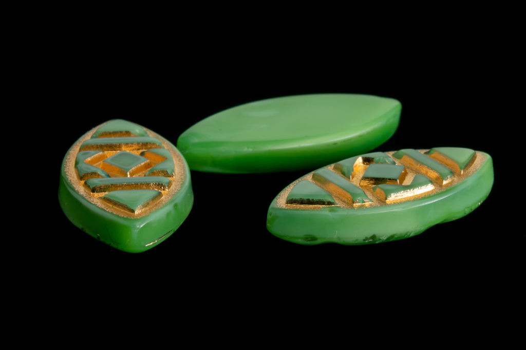 Vintage 9mm x 18mm Green/Gold Navette Cabochon #XS97-F-1
