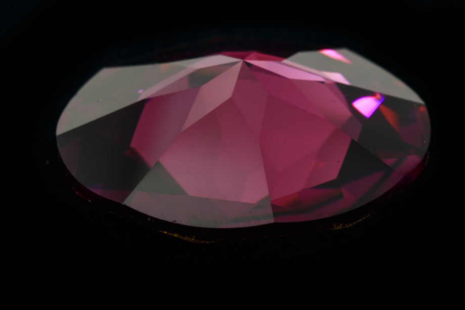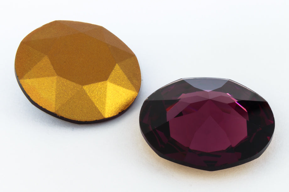 27mm faceted "reverse" point back stone in amethyst with gold foil.