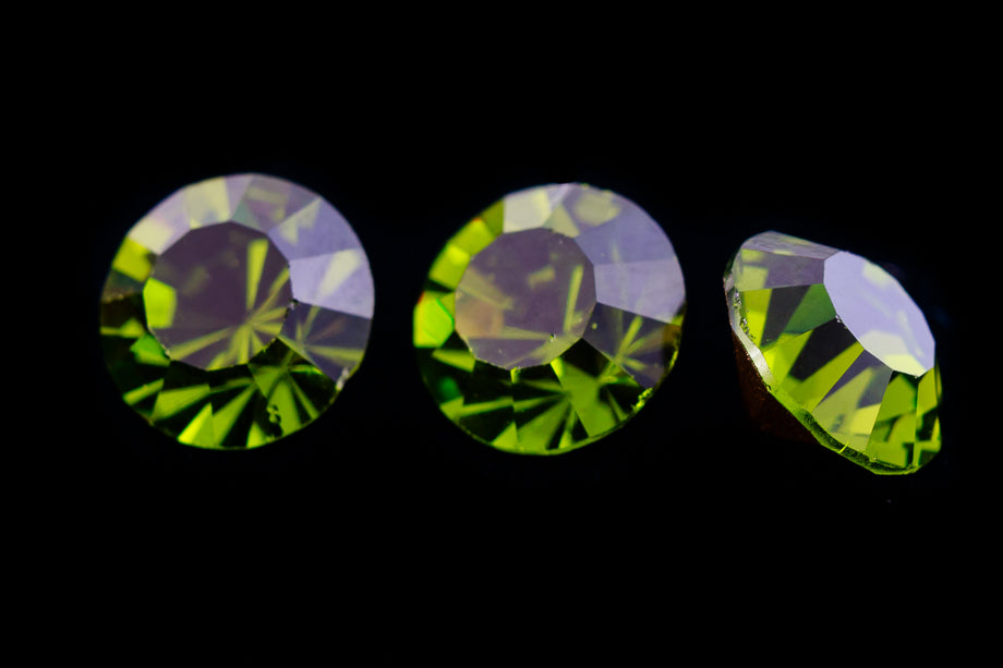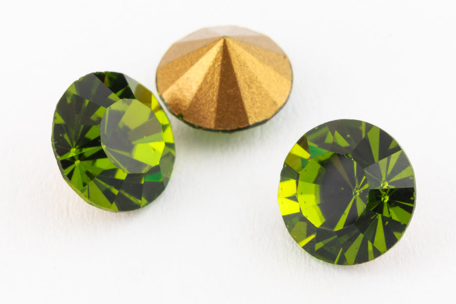 29ss chaton in Olivine coloring with gold foil and point back. Gorgeous!